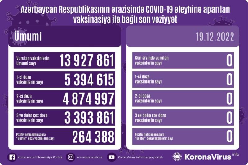 Azərbaycanda son sutkada koronavirus (COVID-19) əleyhinə vaksin vurulmayıb.