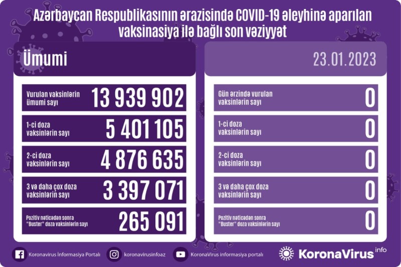 Azərbaycanda son sutkada koronavirus (COVID-19) əleyhinə vaksin vurulmayıb.