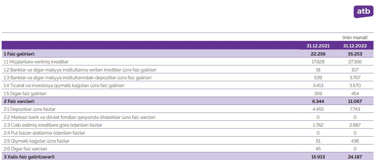 2022-ci ildə Azər Türk Bank 11 milyon manat həcmində xalis mənfəət əldə etmişdir ki, bu da ötən dövrdəki göstəricidən dəfələrlə çoxdur. Qeyd edək ki, 1995-ci ildə təməli qoyulmuş Azər Türk Bank özünün fəaliyyəti dövründə ilk dəfədir ki, bu həcmdə xalis mənfəət əldə etmişdir.