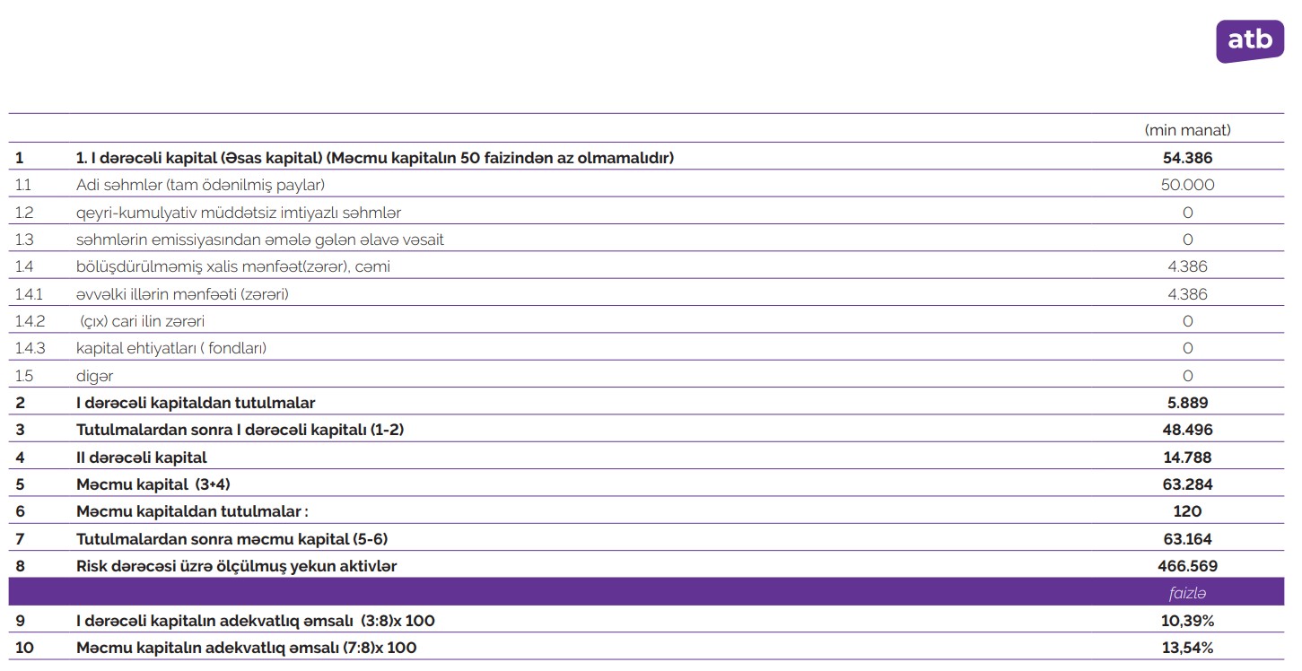 Bankın məcmu kapitalının həcmi 23% artaraq, 63,2 milyon manat olmuşdur.