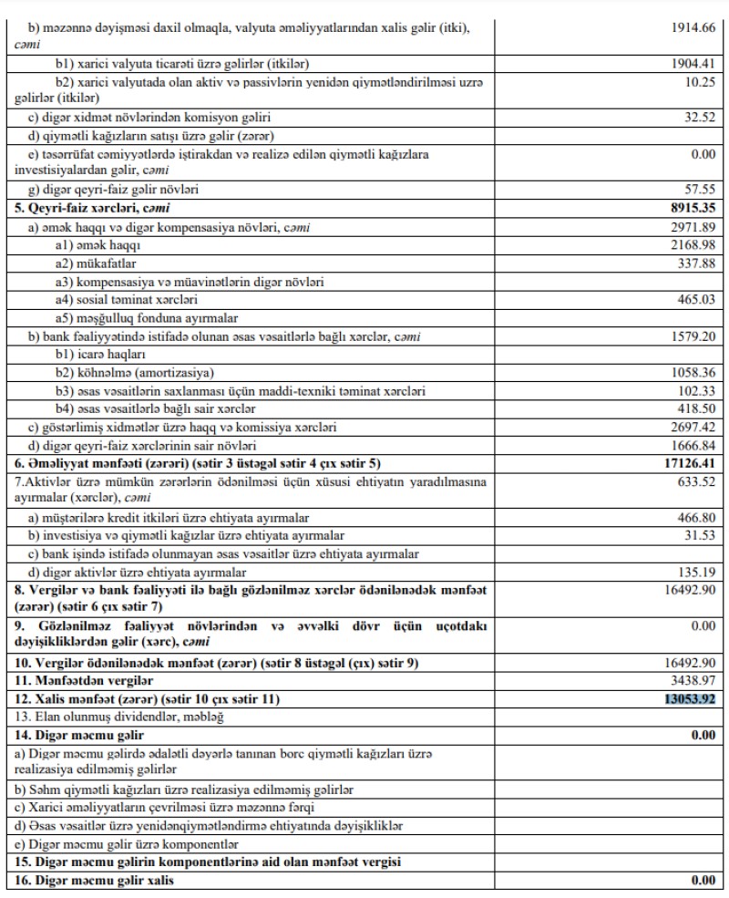 "Naxçıvanbank"ın əməliyyat mənfəəti 2021-ci illə müqayisədə 2022-ci ildə 5 milyon 644 min manat və ya 49% artıb.