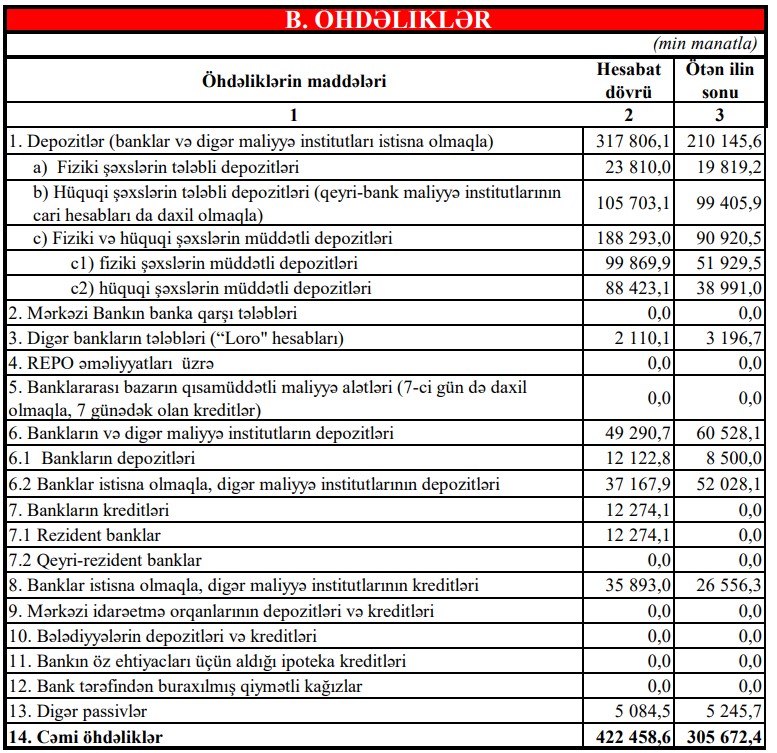 Bank müştərilərinin inam və etibarını qazanmağa davam edir. Göstəricilərdən biri olaraq bankın depozit portfelində il ərzində müşahidə edilən mühüm artımı bunun sübutu kimi qeyd etmək olar. Belə ki, Bankın cəmi depozit portfeli banklar və digər maliyyə institutları istisna olmaqla 2021-ci ilin sonu ilə müqayisədə 51% artaraq 318 mln. manata çatmışdır. Bankın xalis mənfəəti isə 7,5 mln. manatı keçmişdir.